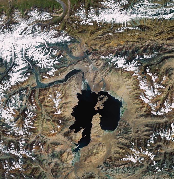 Озеро Каракуль на Памире, космический снимок